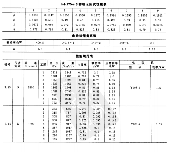F4-57系列風(fēng)機(jī)參數(shù)表